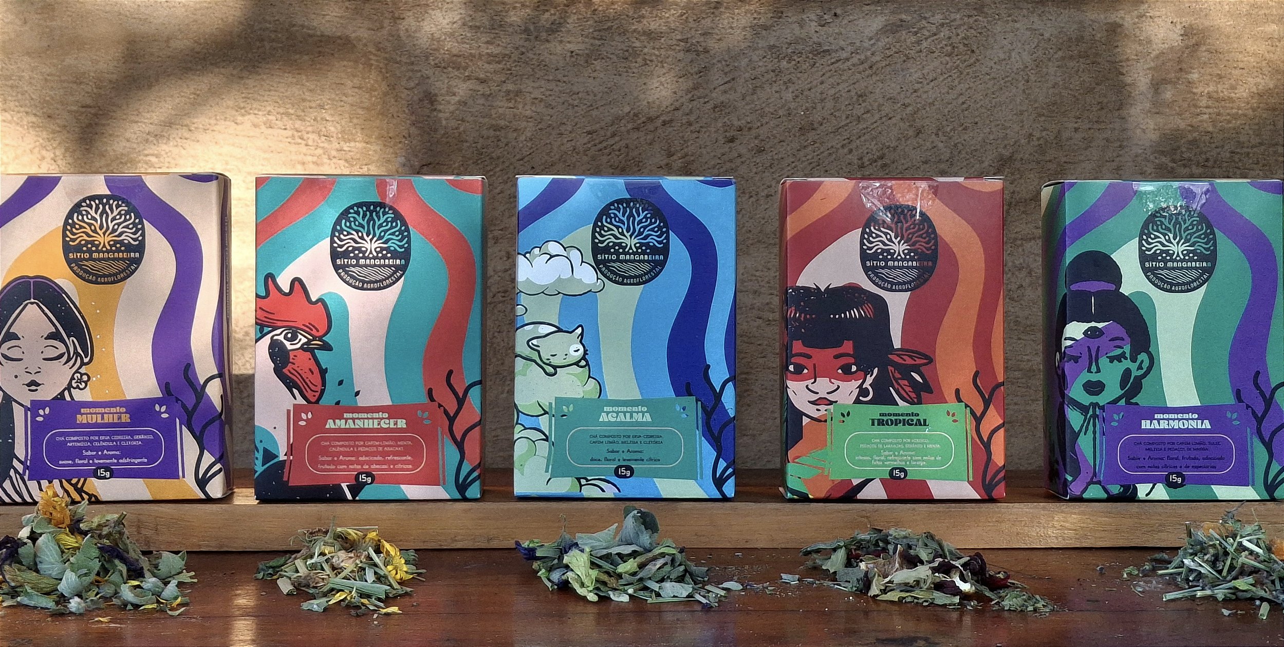 Linha completa dos chás Momentos, 5 caixinha conténdo um sachê biodegradavel de 15g de mistura de ervas em cada. Embalagem celofane compostável biodegradável - necessário ser armazenado bem fechado em local seco e escuro.
